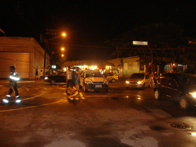 Na Feira de Artesanato os agentes de Trânsito estava orientando os condutores e auxiliando a travessia de pedestres, dado o grande movimento. Policiais Militares circulavam pela feira.